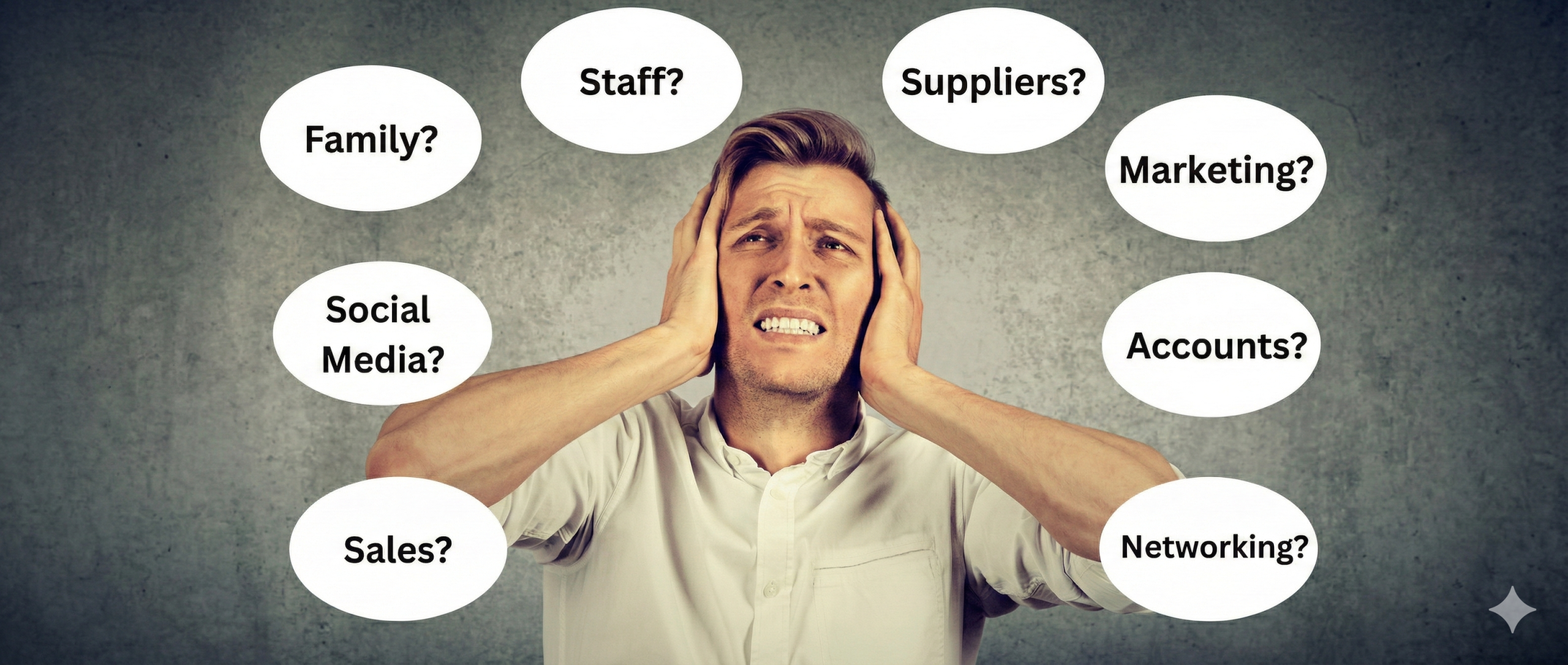 Family need you present. Staff need managing. Marketing needs doing. Sales need closing.